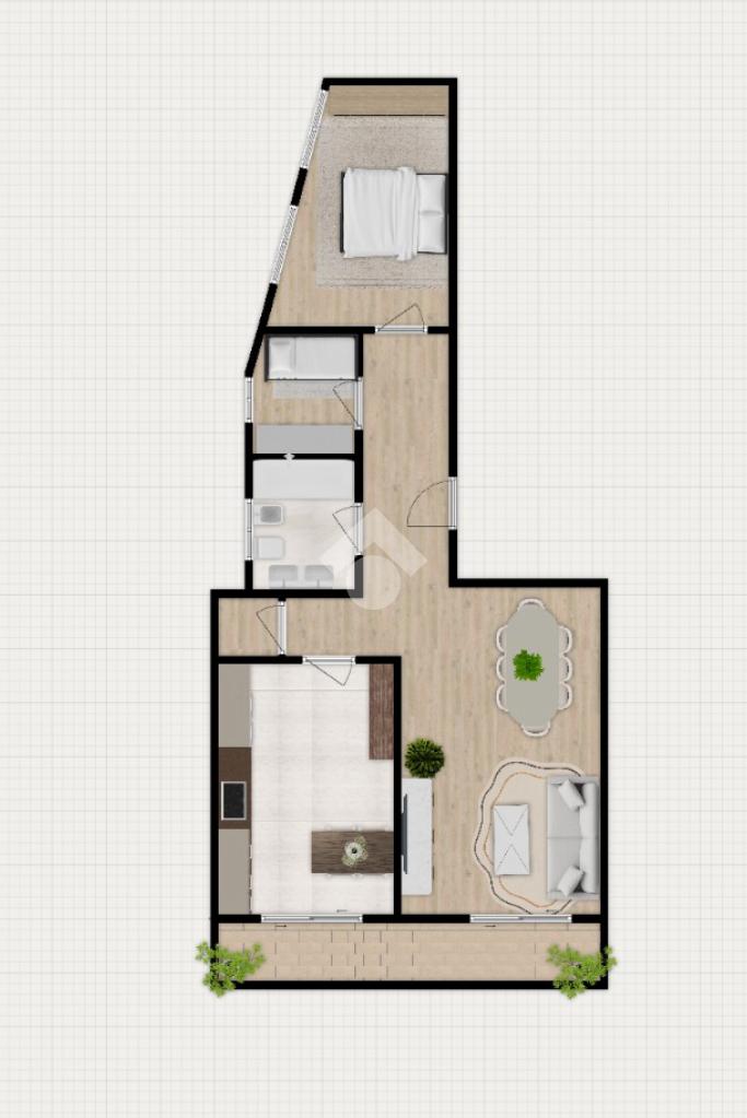 Dal disimpegno si accede poi alla zona notte, ben separata, che comprende una spaziosa camera matrimoniale, uno studio versatile – perfetto come stanza per il lavoro da casa, una seconda cameretta o una stanza per gli hobby – e un bagno con finestra. Gli ambienti sono ariosi e ben distribuiti, rendendo la casa funzionale per le esigenze quotidiane.