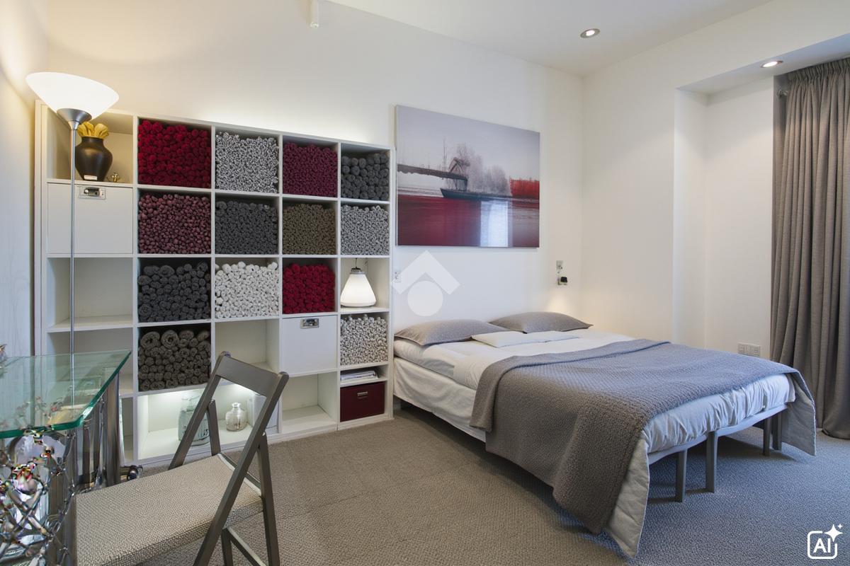 L'ingresso si apre su un luminoso soggiorno, reso ancora più accogliente dalla sua ottima esposizione. Lo spazio è ben organizzato, con un angolo cottura funzionale, un bagno finestrato con box doccia e una zona notte composta da una spaziosa camera matrimoniale.