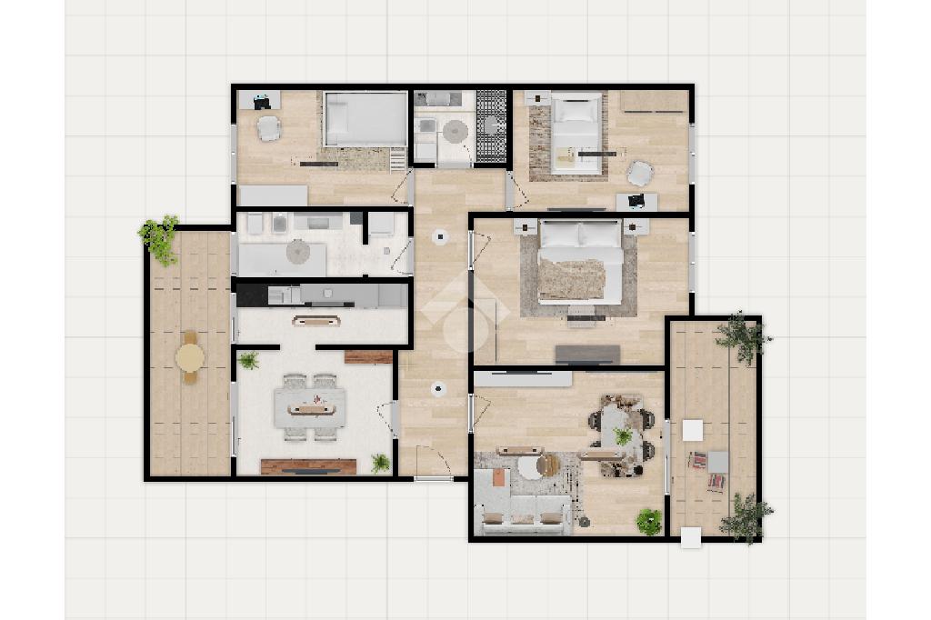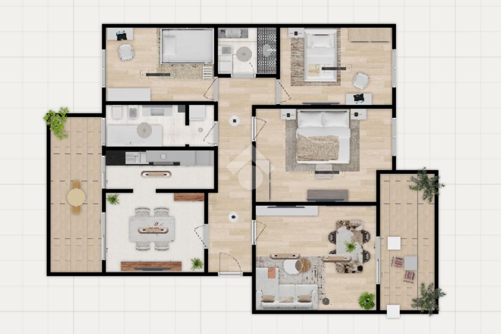 Appartamento luminoso con soggiorno, cucina abitabile, tre camere da letto, doppi servizi e doppi terrazzi. Palazzo con ascensore. Completo di garage. Subito pronto per essere abitato, con riscaldamento autonomo.