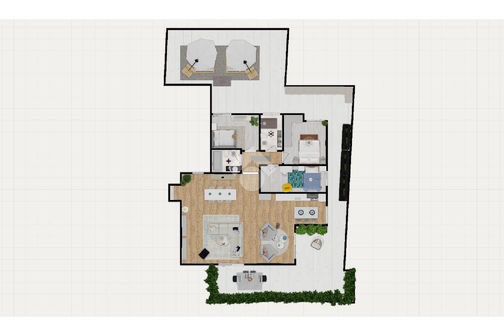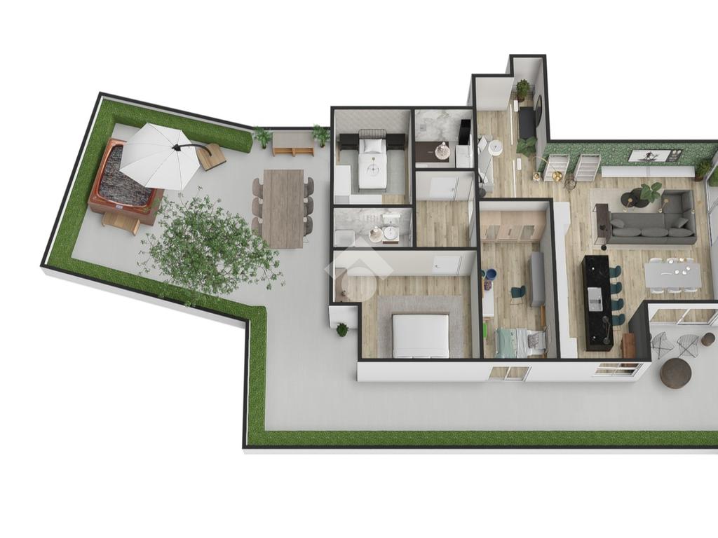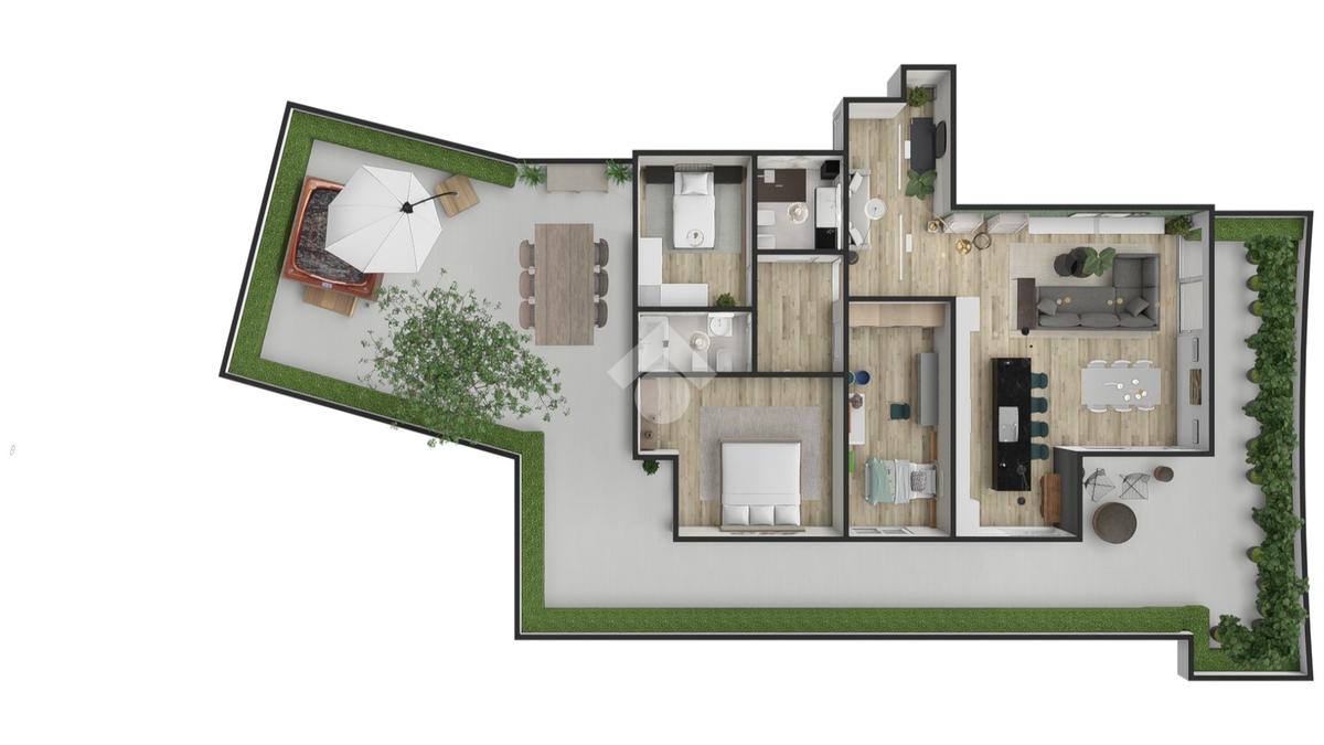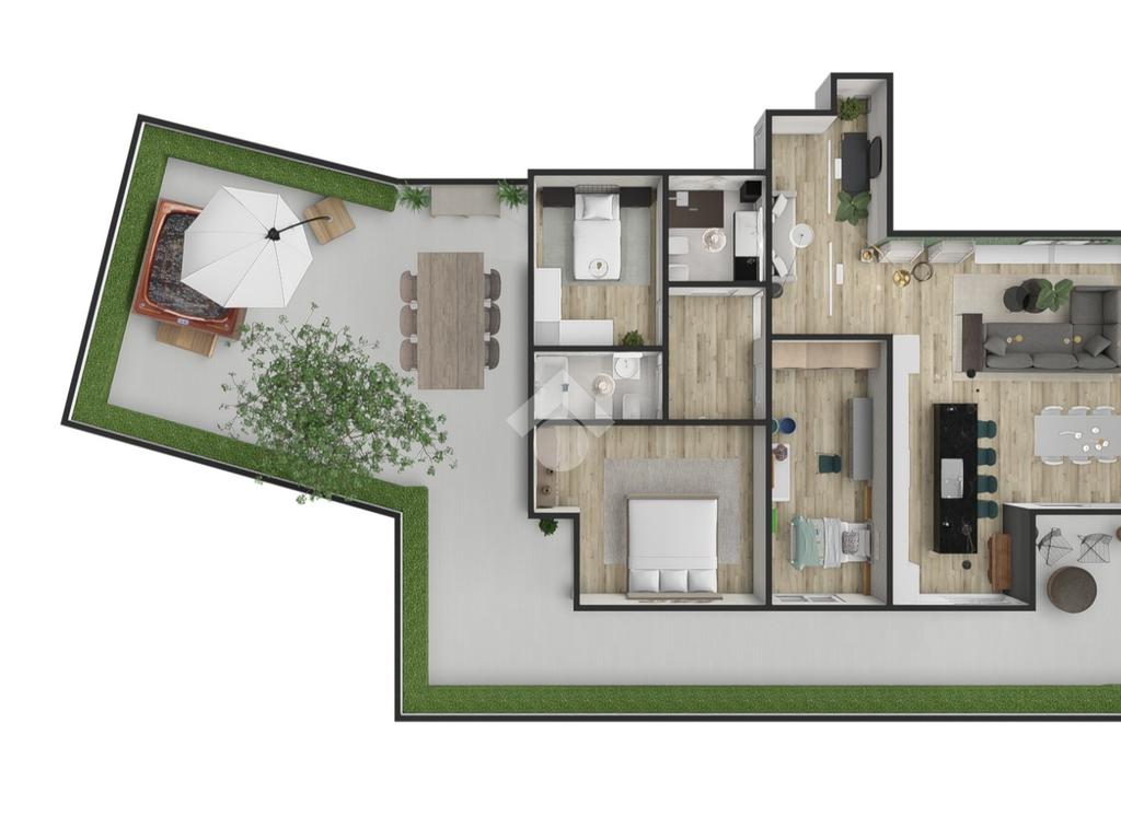L'immenso terrazzo, rappresenta il vero punto forte dell'abitazione. Con le sue dimensioni generose, può essere suddiviso in due aree principali. Una prima area conviviale, perfetta per ospitare una cucina da esterni con barbecue, ideale per pranzi e cene all'aperto; e una seconda area più privata, accessibile direttamente dalle camere da letto, dove si può installare un idromassaggio o creare un solarium con lettini, un'oasi di relax nel cuore della città.