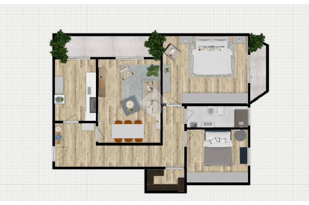 Grazie alla disposizione interna e alla presenza di tramezzi, l'appartamento può essere facilmente personalizzato per adattarsi al meglio alle esigenze di una famiglia.