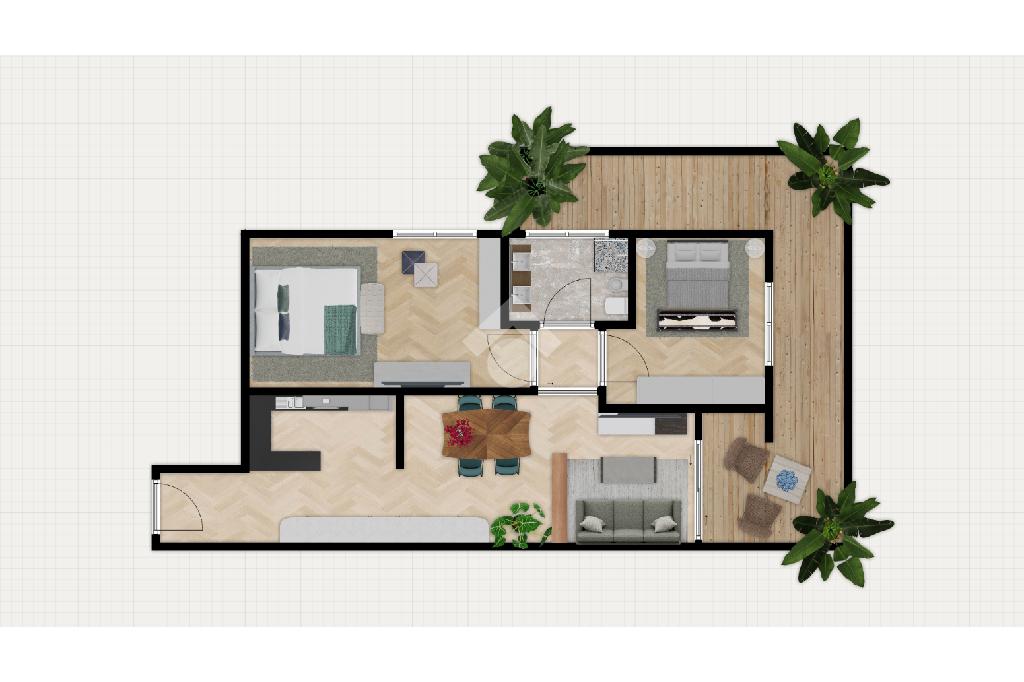 SOGGIORNO, CUCINOTTO,DUE CAMERE, BAGNO E TERRAZZA ABITABILE.