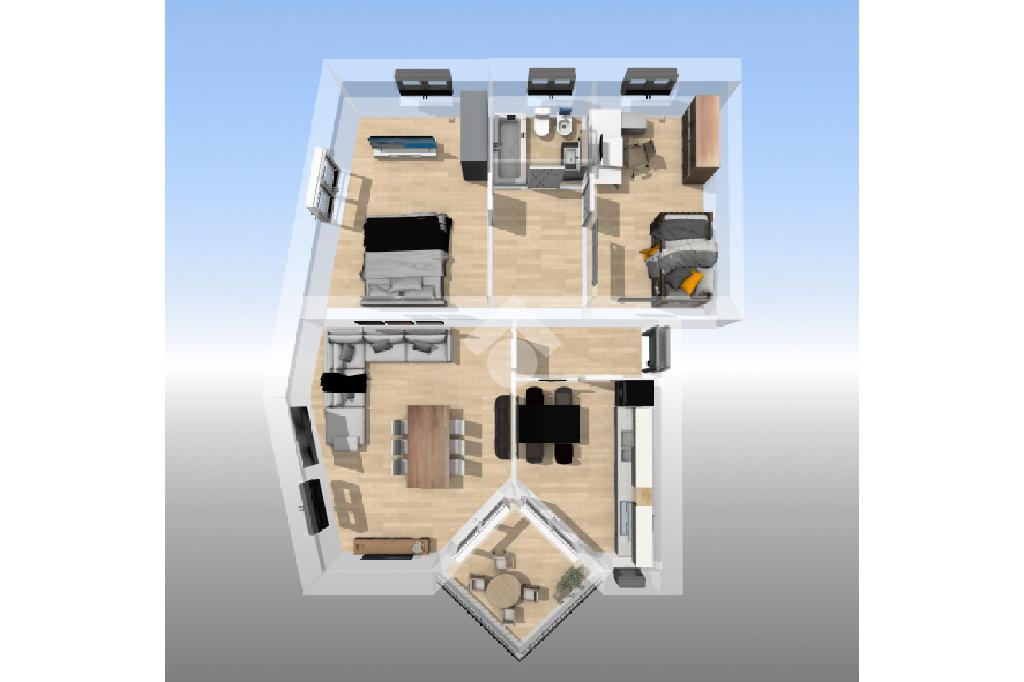 Trilocale composto da ingresso, cucina abitabile e ampio living con accesso al terrazzo abitabile. La zona notte è servita da due camere matrimoniali e bagno finestrato con vasca. Completa la proprietà una cantina di pertinenza.