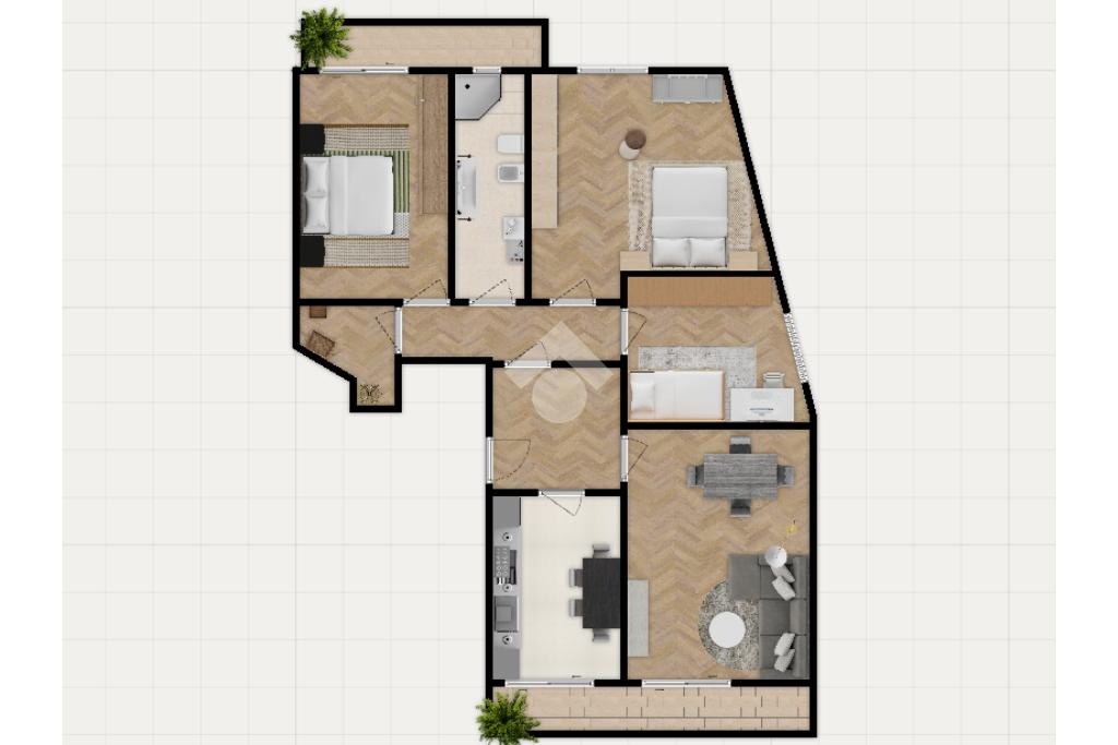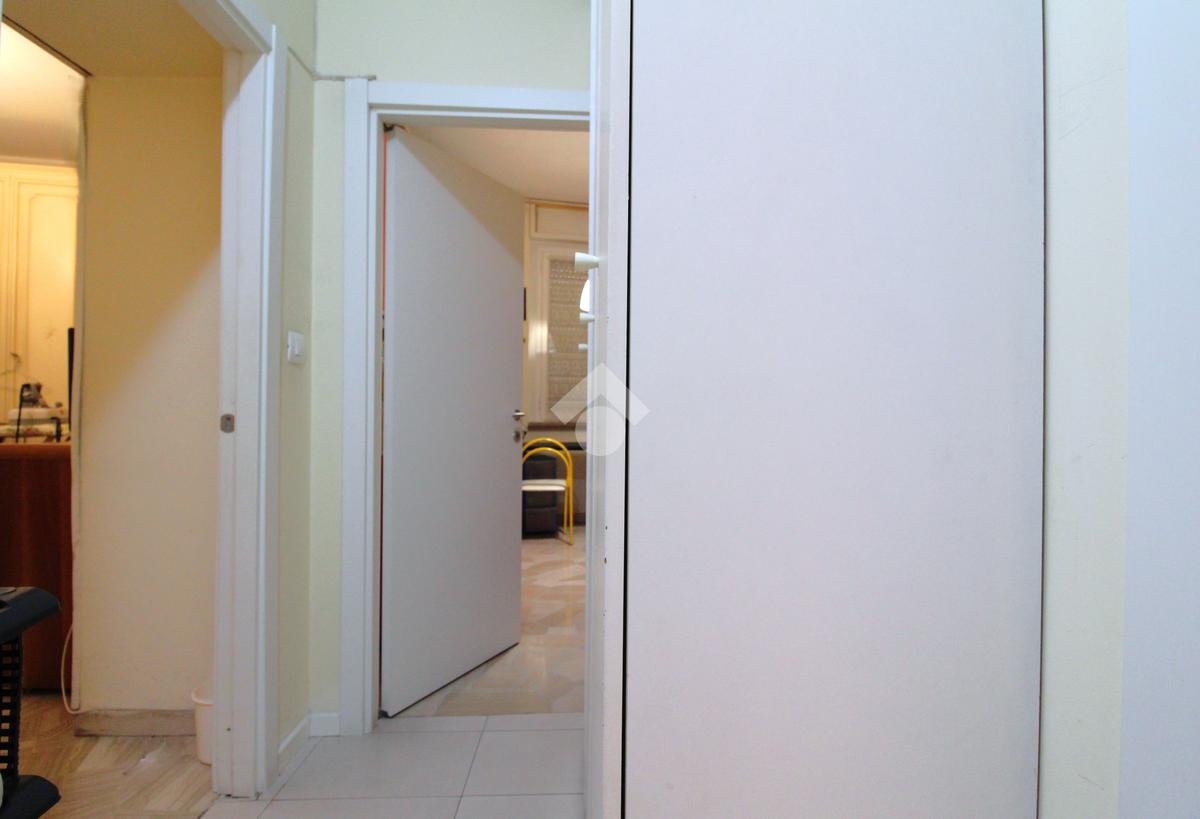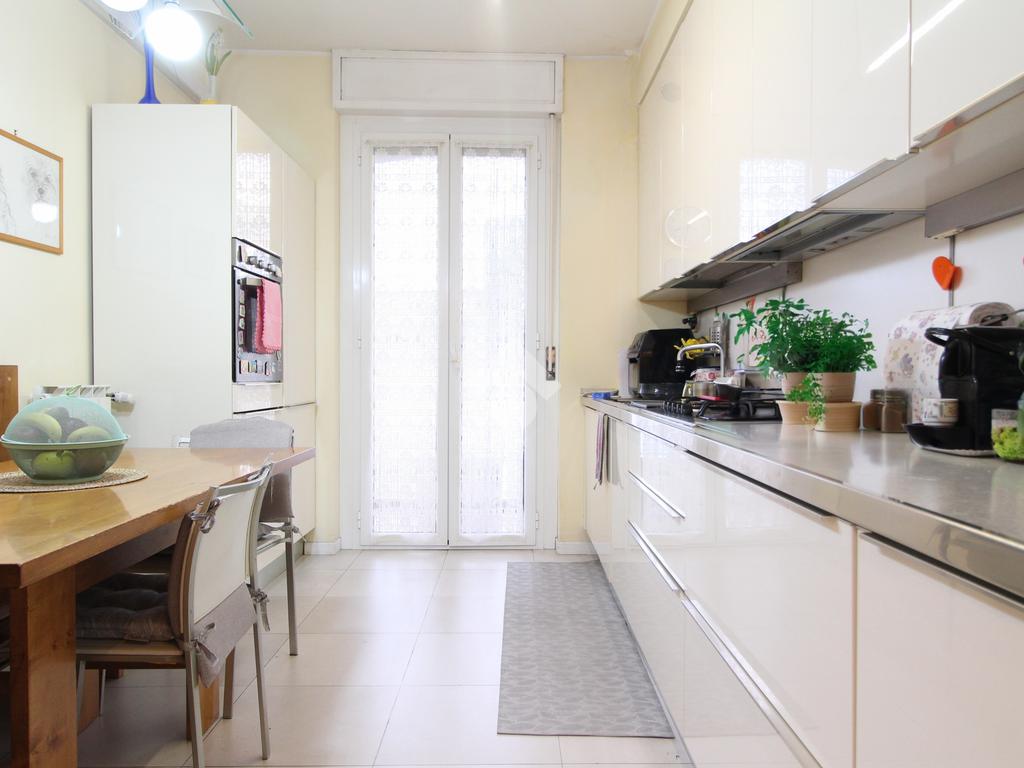 In un palazzo in cortina di mattoncini, solido e ben tenuto, privo di barriere architettoniche e servito da un ascensore che accompagna direttamente al piano, siamo accolti da un ingresso che introduce nella parte dedicata alla convivialità dove la cucina abitabile si integra perfettamente con la vita quotidiana e conduce in maniera naturale verso un soggiorno ampio collegato al primo terrazzo creando una continuità armoniosa tra gli ambienti interni ed esterni