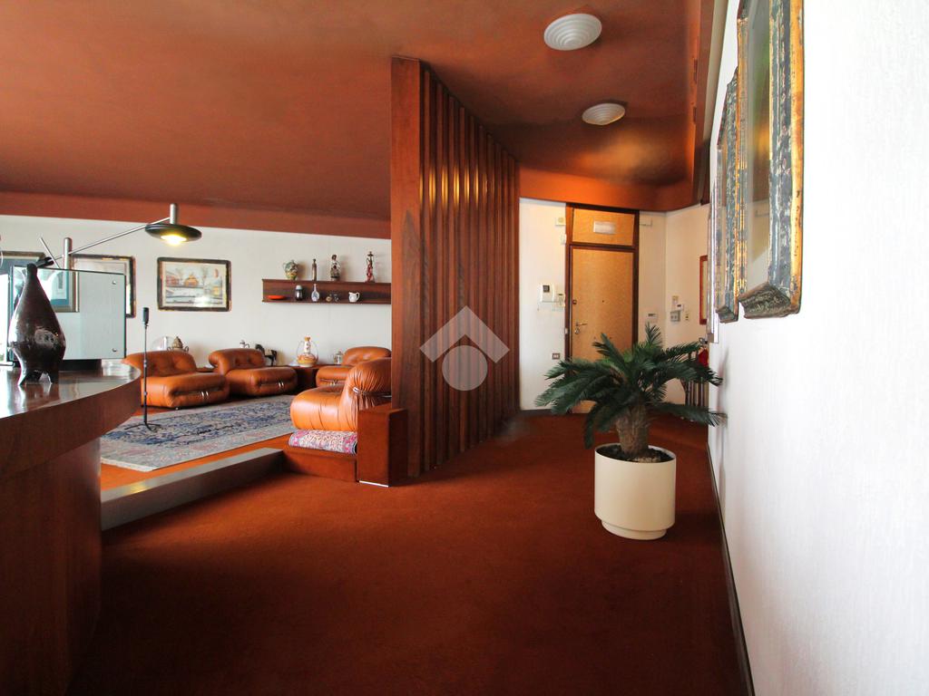 L’abitazione si contraddistingue per la metrica generosa e per una distribuzione interna di chiara vocazione rappresentativa, completamente ideata e plasmata dall’architetto Maroni. L’ingresso si apre su un maestoso salone di circa 70–80 mq, un ambiente di rara ampiezza e luminosità, articolato in un’ariosa zona living e in un raffinato salotto di conversazione. Le ampie superfici finestrate, che avvolgono l’ambiente in una luce naturale costante, conferiscono alla zona giorno una sensazione di apertura e respiro che rende lo spazio ideale per chi desidera una dimora in grado di accogliere, stupire e offrire comfort abitativo di livello superiore.