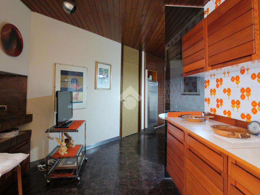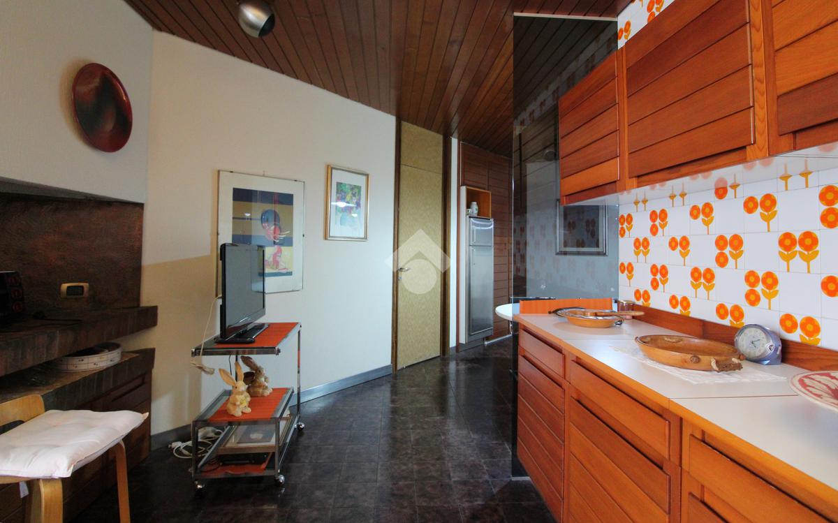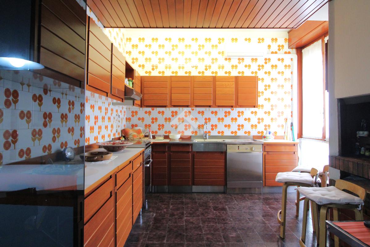 La cucina, ampiamente abitabile, è impreziosita da un camino, elemento scenico e funzionale che ne accentua l’atmosfera calda e conviviale. Adiacente troviamo un’ampia sala da pranzo, perfetta per cene di rappresentanza o per momenti conviviali con familiari e ospiti.
