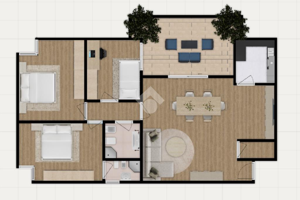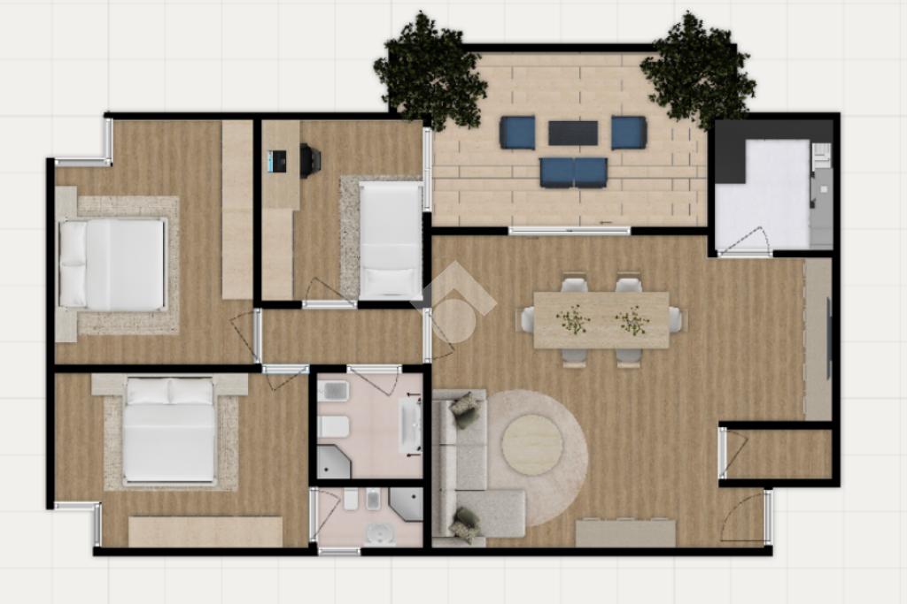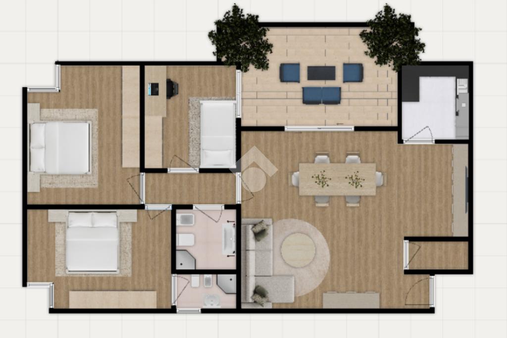 Proseguendo, un disimpegno ben studiato conduce alla parte più riservata della casa, dove trovano spazio tre camere da letto e due bagni di cui uno in camera, pensati per garantire praticità e una gestione quotidiana comoda, anche per nuclei familiari più strutturati. All’interno dell’appartamento è presente anche un ripostiglio, facilmente utilizzabile come lavanderia o spazio di servizio, utile per mantenere ordine e organizzazione.