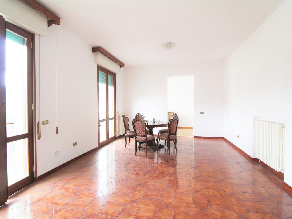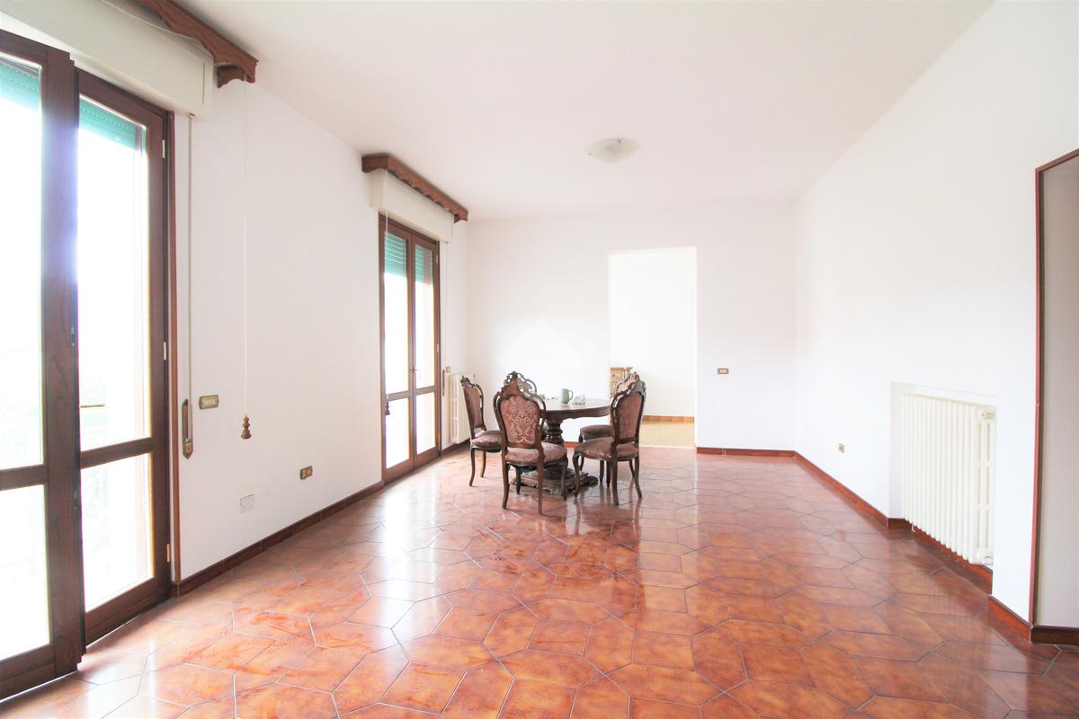 oggi si presenta come un ampio appartamento su un unico piano con ambienti luminosi e ben distribuiti, mentre al piano inferiore trovi un grande spazio attualmente accatastato come cantina, ma con potenziale da taverna, mini-appartamento o zona living moderna con cucina open space.